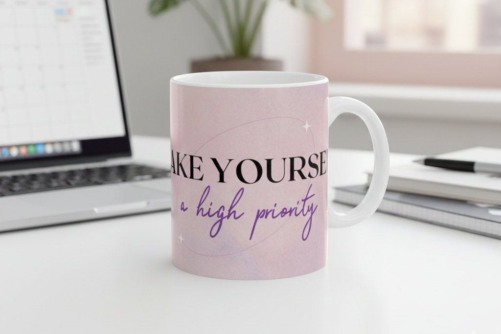 Happy Cup Coffee Mug — Cute Heart Character with Coffee Accent Mug