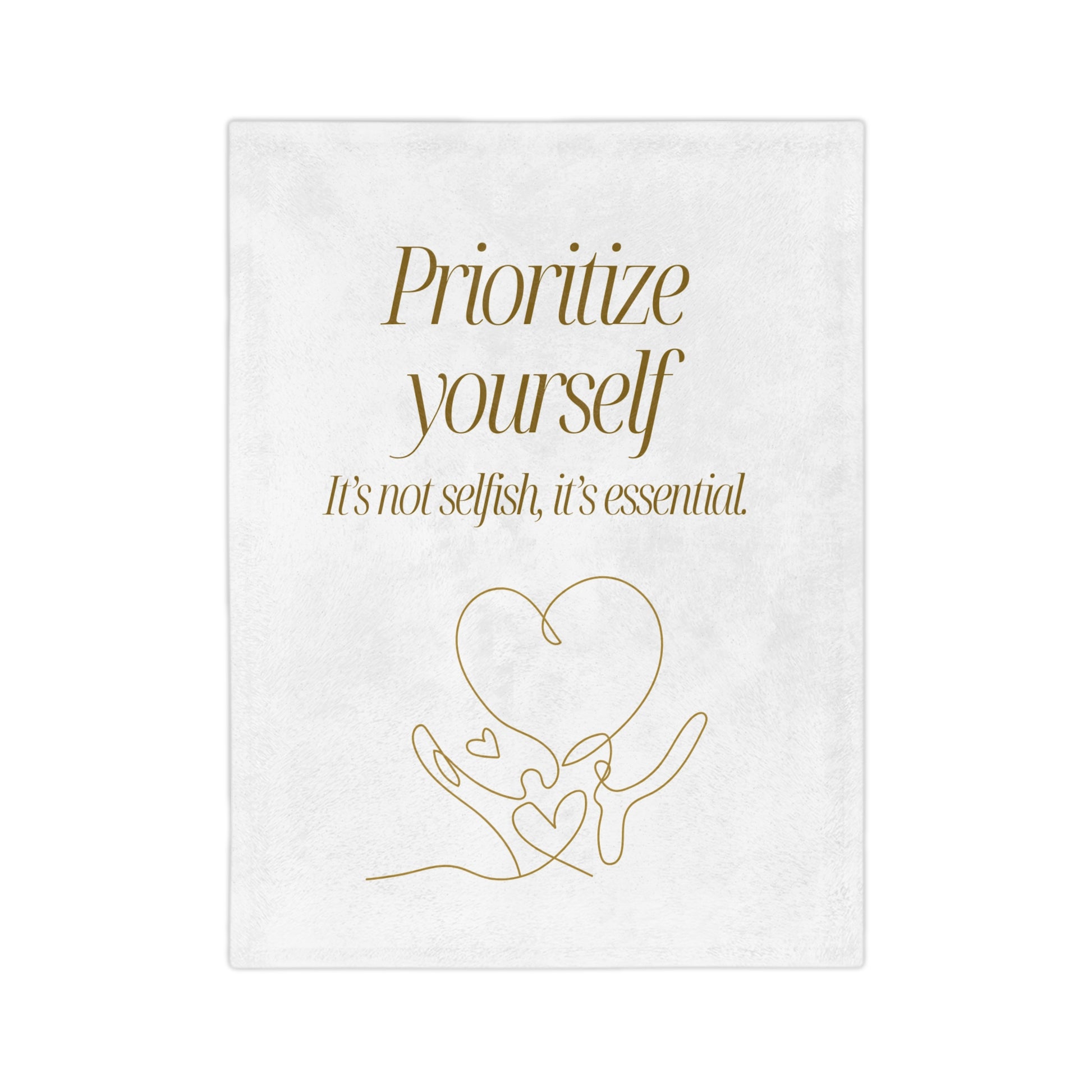 Prioritize Yourself Blanket — Motivational Velveteen Microfiber Throw